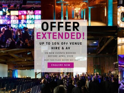 Eager to get your next event in 2026 booked? We are offering up to 10% off venue hire and AV on new events booked between January and March, taking place by the 30th of April. If you want to claim this offer, contact the sales team with your enquiry quoting “2026Discount” New Year 10% Discount – Terms & Conditions 1. Eligibility The 10% discount is available on Events booked between 12th January and 31st March 2026. Events must take place on or […]